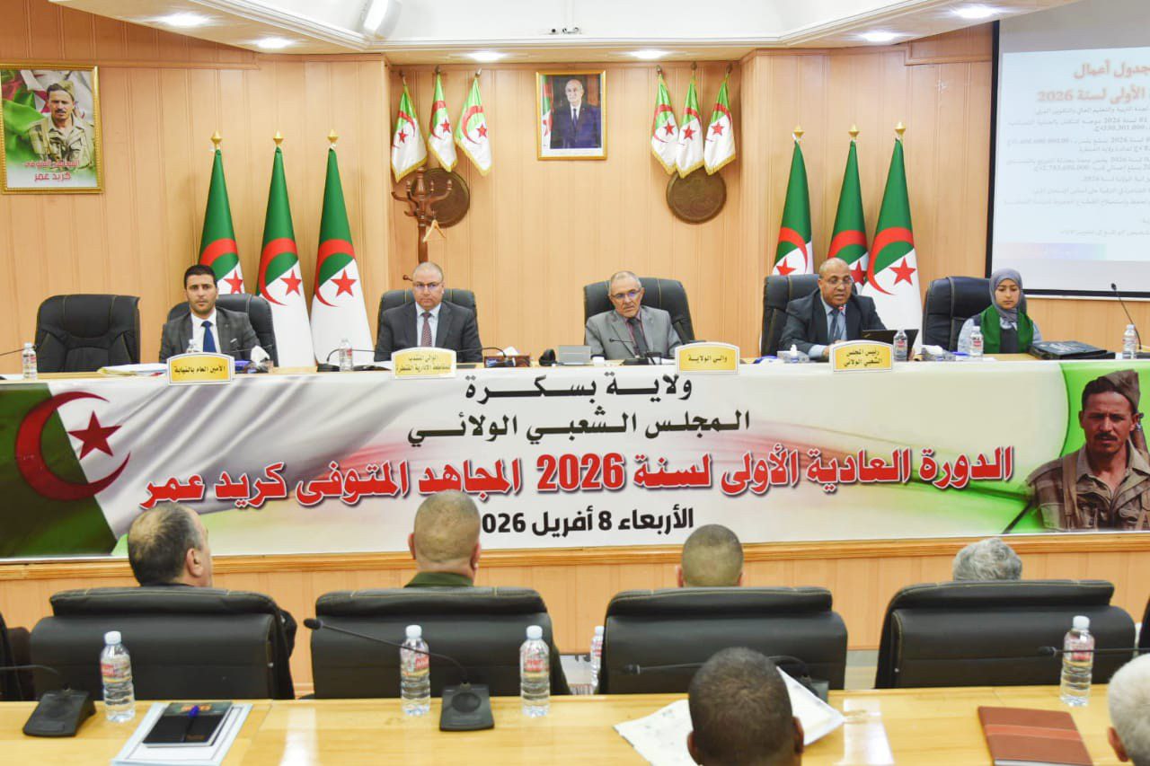 حضر والي الولاية بمعية الوالي المنتدب لولاية القنطرة وأعضاء المجلس التنفيذي للولاية صباح اليوم بقاعة الإجتماعات الكبرى للولاية أشغال الدورة العادية الأولى للمجلس الشعبي الولائي لسنة 2026 التي حملت اسم المجاهد المتوفى ” عمر كريد” رحمه الله وطيب ثراه ، الذي تم تكريم عائلته بهذه المناسبة.