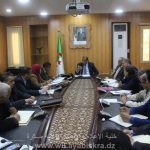 قام صباح اليوم الموافق لـــ 22مارس2018 السيد أحمد كروم والي ولاية بسكرة علي الاحتفال باليوم العالمي للغابات الموافق 21 مارس 2018 ، من مقر المجلس القضائي بسكرة اشرف علي عملية تشجير وكذ ا بالقطعة المحاذية لحي 1000 مسكن مقابل المجلس ، بعدها شارك اسرة الدفاع عيدهم اليوم الوطني للمحامي الموافق لــ 23 مارس 2018 بمقر مجلس القضاء . ثم توجها الي مقر مديرية الموارد المائية للاحتفال باليوم العلمي للماء المصادف لـ 22 مارس 2018 حيث تلقي شروحا مفصلة حول القطاع وما تم التوصل اليه من ربط بالمياه الصالحة للشرب بنسبة 95 % وتفقد معرض خصص لمراحل تطور القطاع وعرض مختلف البرامج والاجهزة المتطورة للكشف عن تسرب المياه والربط العشواى وتخللت الزيارة مداخلة لاستاذ باحث حول الطرق الانجع للاقتصاد المياه وفي الختام تكريمات متنوعة